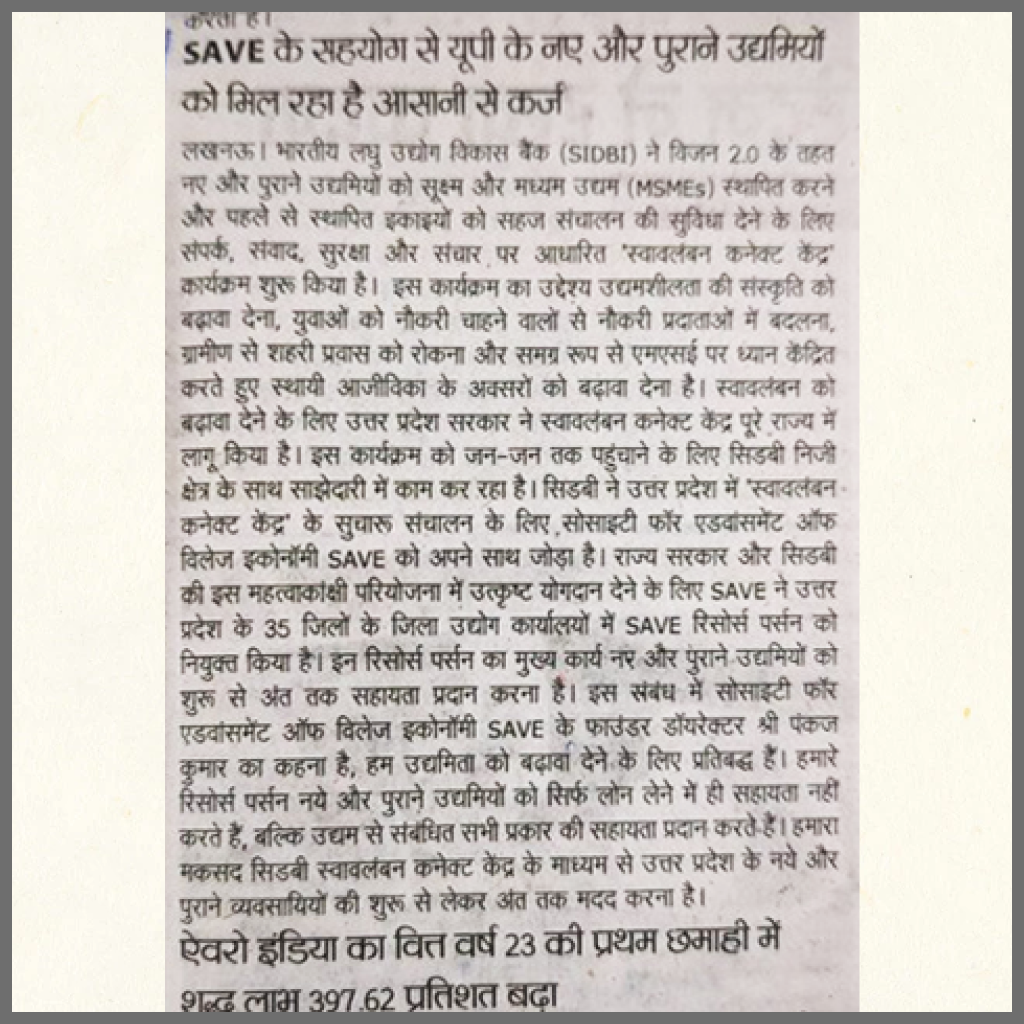 In partnership with SIDBI, SAVE is closely working with the Government of UP in 35 districts to implement the Swawalamban Scheme to increase entrepreneurship.This news has appeared in the Dainik Bhaskar.