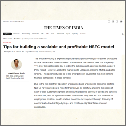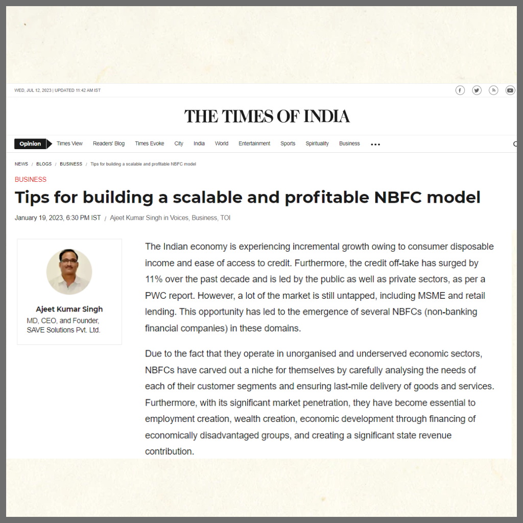 SAVE’s MD talks about ‘Tips for building a scalable and profitable NBFC model’ with the Times of India.