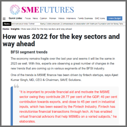 Online business magazine 'SME Futures' quotes Mr. Ajeet Kumar Singh along with various industry experts on "How was 2022 for the key sectors and way ahead.