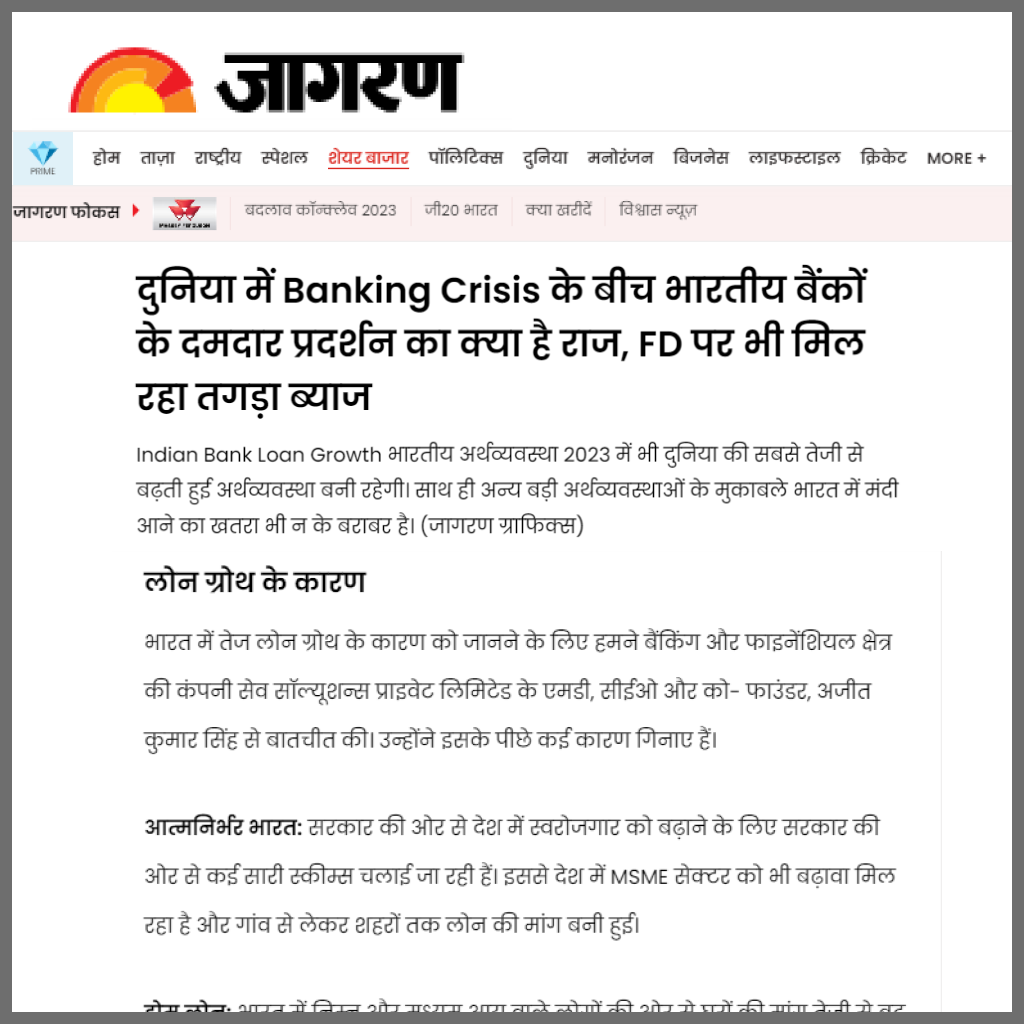 Hindi News Platform Dainik Jagran published an article titled ‘ Duniya Mein Banking Crisis Ke Bich Bhartiya Bankon Ke Damdaar Pradarshan ka Kya Hai Raaz”, featuring a quote by SAVE’s Co- Founder.