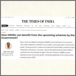 Leading English News platform, the Times of India published an article titled “How MSMEs can Benefit from the Upcoming Schemes by the Government”, by Mr. Ajeet Kumar Singh.